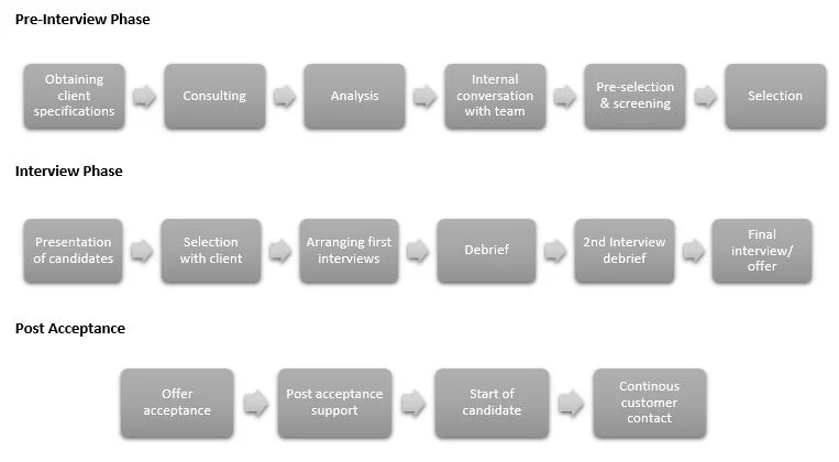 We do not have a seniority specialism, but skillset specialism. Hence we can provide candidates from a more junior end with 3+ years’ experience but also 15+ years executive level appointments are part of our portfolio. Due to our long-term career building philosophy we are in touch with our candidates for a number of years and have hence already built strong relationships that can again be used by our clients to reach their potential targets.